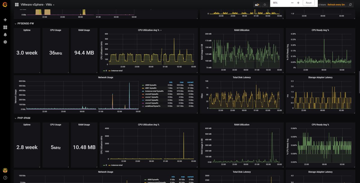[VMware Blog] Looking for the Perfect Dashboard: InfluxDB, Telegraf, and Grafana – Part XII (Native Telegraf Plugin for vSphere) - up and running in minutes https://jorgedelacruz.uk/2018/10/01/looking-for-the-perfect-dashboard-influxdb-telegraf-and-grafana-part-xii-native-telegraf-plugin-for-vsphere/ … .json files ready to import //