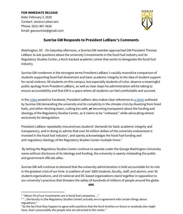 absolutely disgusting rhetoric that the president of such an institution should be held accountable for. there are no moral grounds by which he can compare demanding climate justice to inciting racial violence.