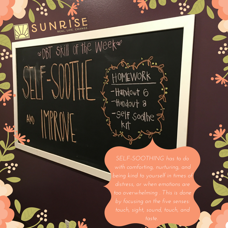 #DBTskill of the week is self-soothe! How do you plan on taking care of yourself today?#selfcare#sunrisertcpic.twitter.com/MzbUsbzvOe