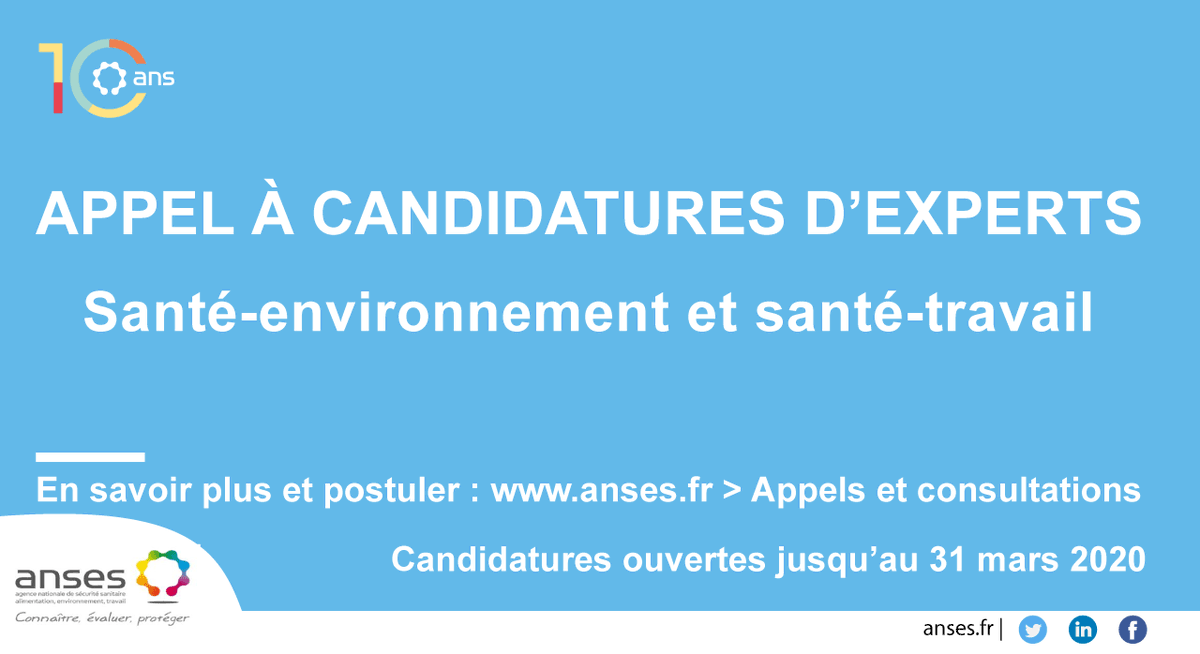 Appel à experts ! L’Anses renouvelle ses collectifs de travail en santé-environnement et santé-travail. En savoir plus