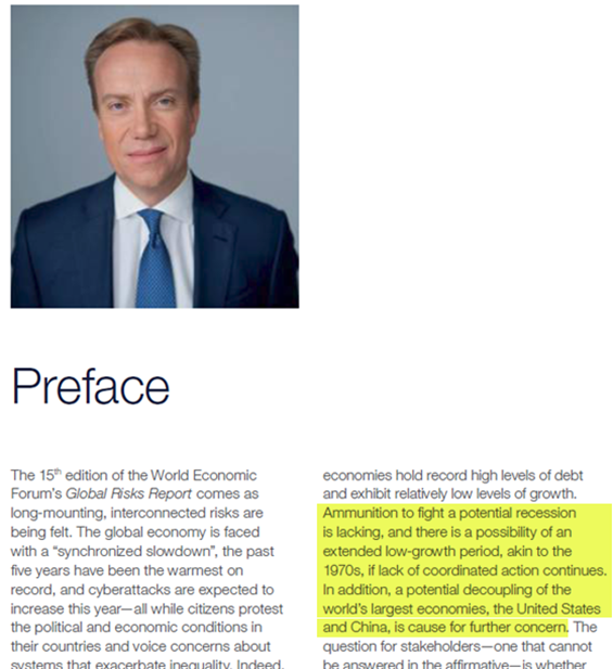 @wef Global Risks 2020 has this profound but vague prediction: "There is a possibility of an extended low-growth period, akin to the 1970s, if lack of coordinated action continues." Our SF@superforecaster workshop says the implied probability ranges 10%–90%, median of 35%.pic.twitter.com/2hPKyvxfiM