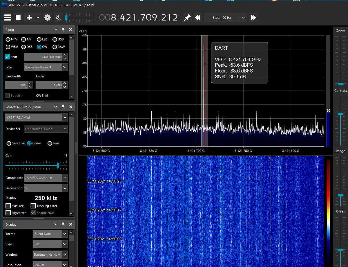 Strong signal from DART on 8421.709 MHz probably switched on HGApic.twitter.com/tcDZMqDq3K