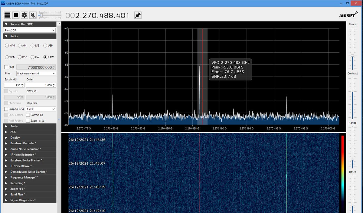 JWST evening signal received with Adalm Pluto with 0.5 ppm TCXO and SDR#pic.twitter.com/eAJwrWLGt4