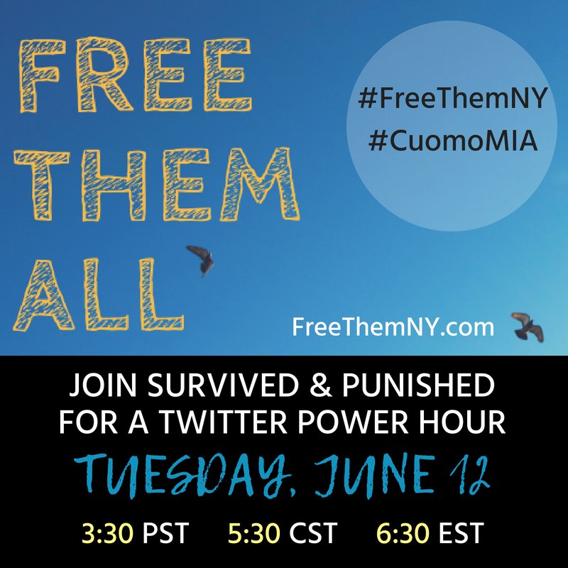 Please join @survivepunish NY for a Twitter Power Hour on June 12 about Governor Cuomo's failure to live up to his promise to commute sentences. #CuomoMIA #FreeThemNYpic.twitter.com/BBCvjaR9r3