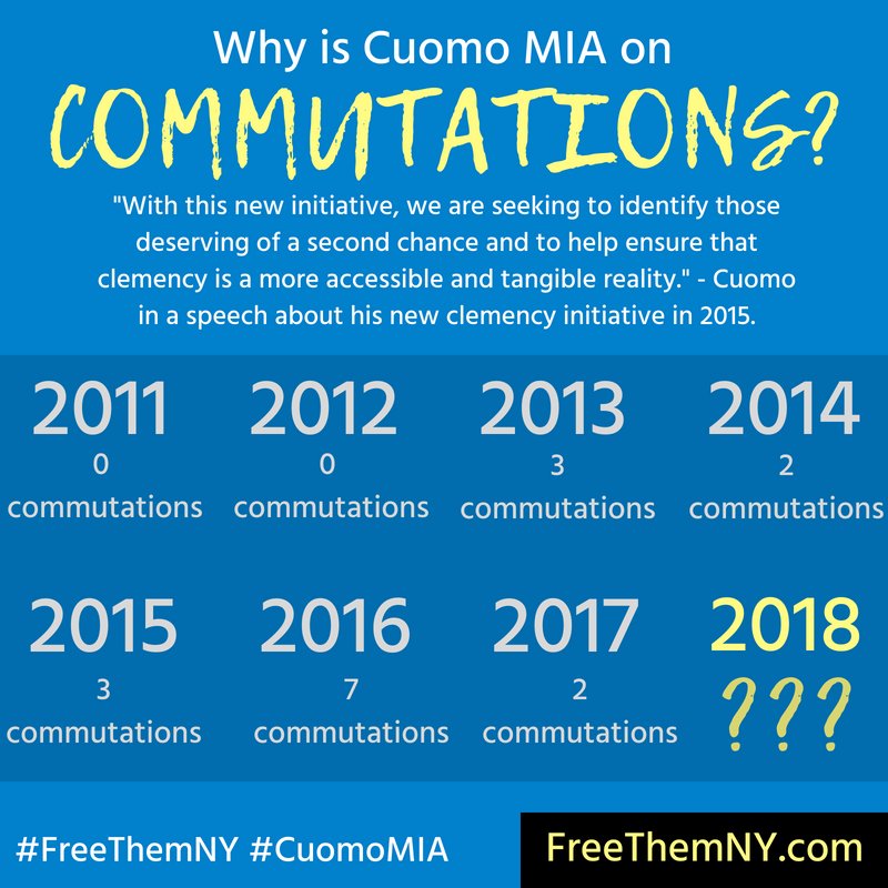 2018 - NO COMMUTATIONS granted so far. We have no idea what @NYGovCuomo is going to do. His record so far has been truly terrible and shameful. #CuomoMIA #FreeThemNY