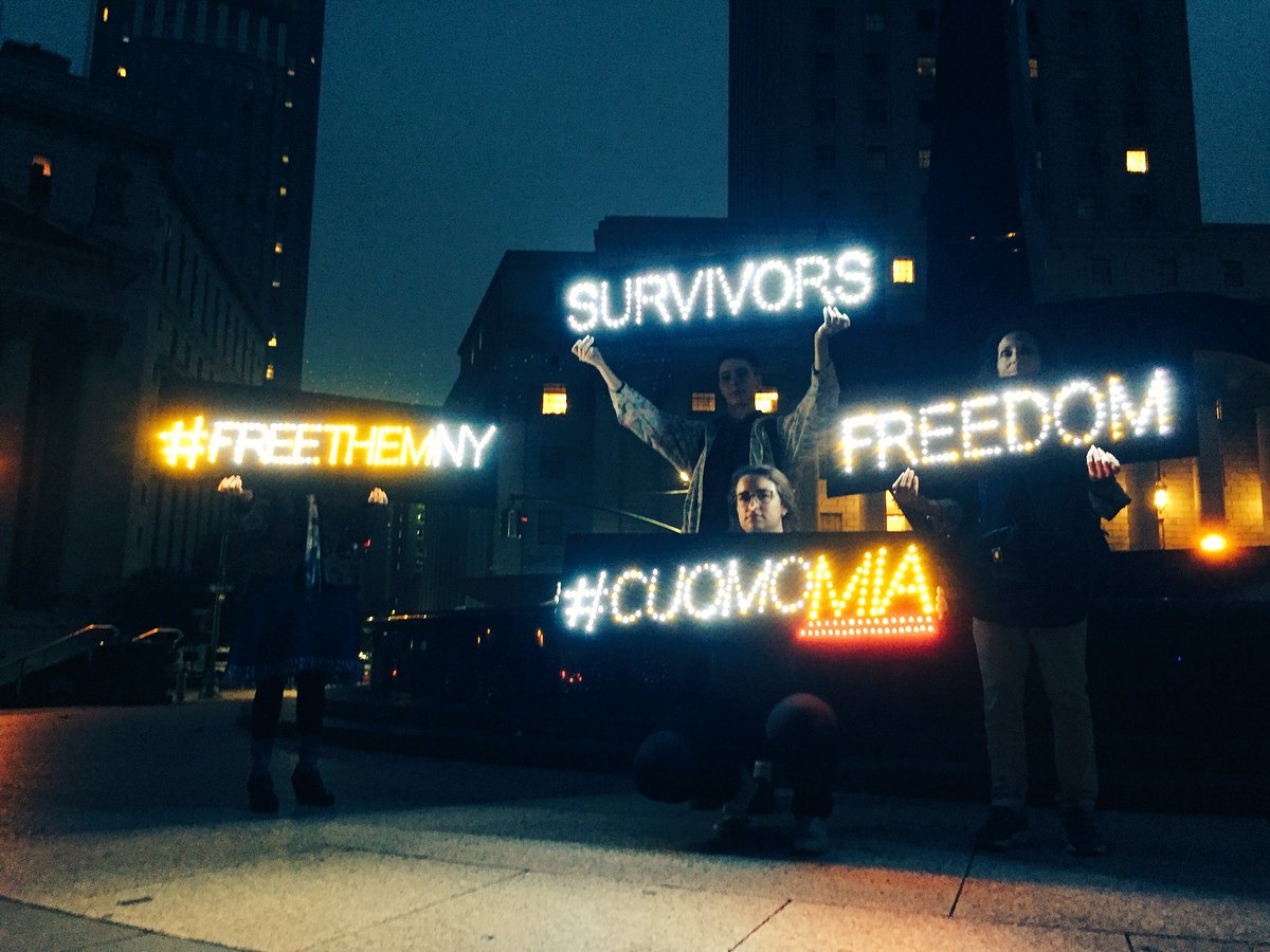 BREAKING! Light board action in Foley Square demanding @NYGovCuomo free all criminalized survivors now! #CuomoMIA #FreeThemNYpic.twitter.com/eFbSRAFH79