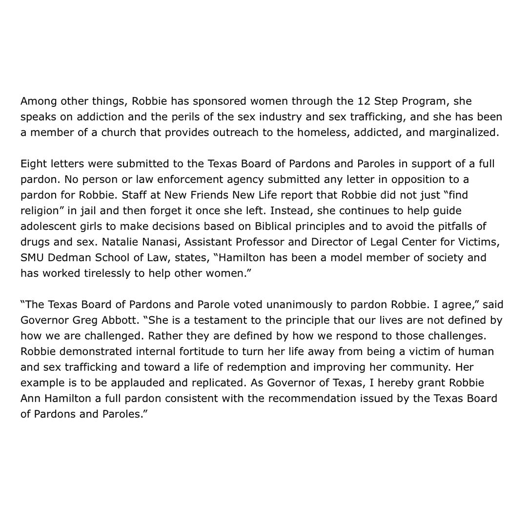 One way to celebrate #HumanTraffickingAwarenessDay is to provide redemption for victims of it. I'm doing that by granting a pardon for a woman who was lured into human & sex trafficking that led to some petty criminal offenses. She turned to God & turned her life around. pic.twitter.com/sKta3cqV9b