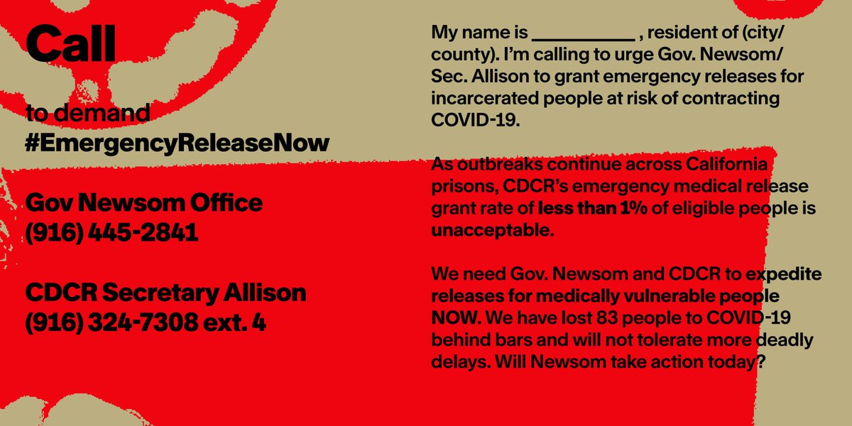 We call on @GavinNewsom @CACorrections to grant #ClemencyNow #EmergencyReleaseNow. During this pandemic, more people deemed high risk have died in CA prisons than been released.