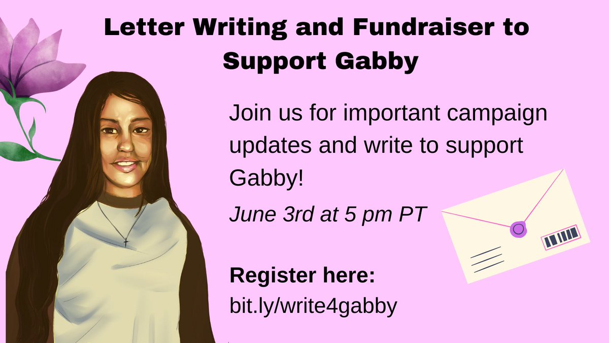 Join us on THURSDAY 6/3 at 5 PM PT for a fundraiser and letter writing event to support Gabby Solano, a DV survivor who was criminalized for defending herself. We will hear updates from the #FreeGabby campaign and write to support Gabby!