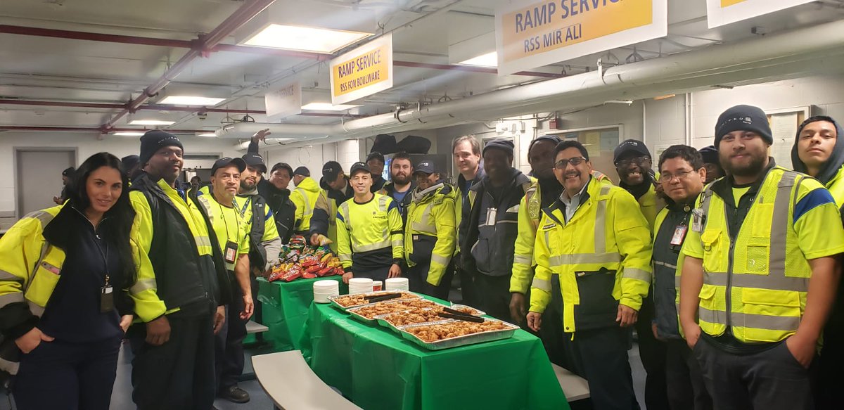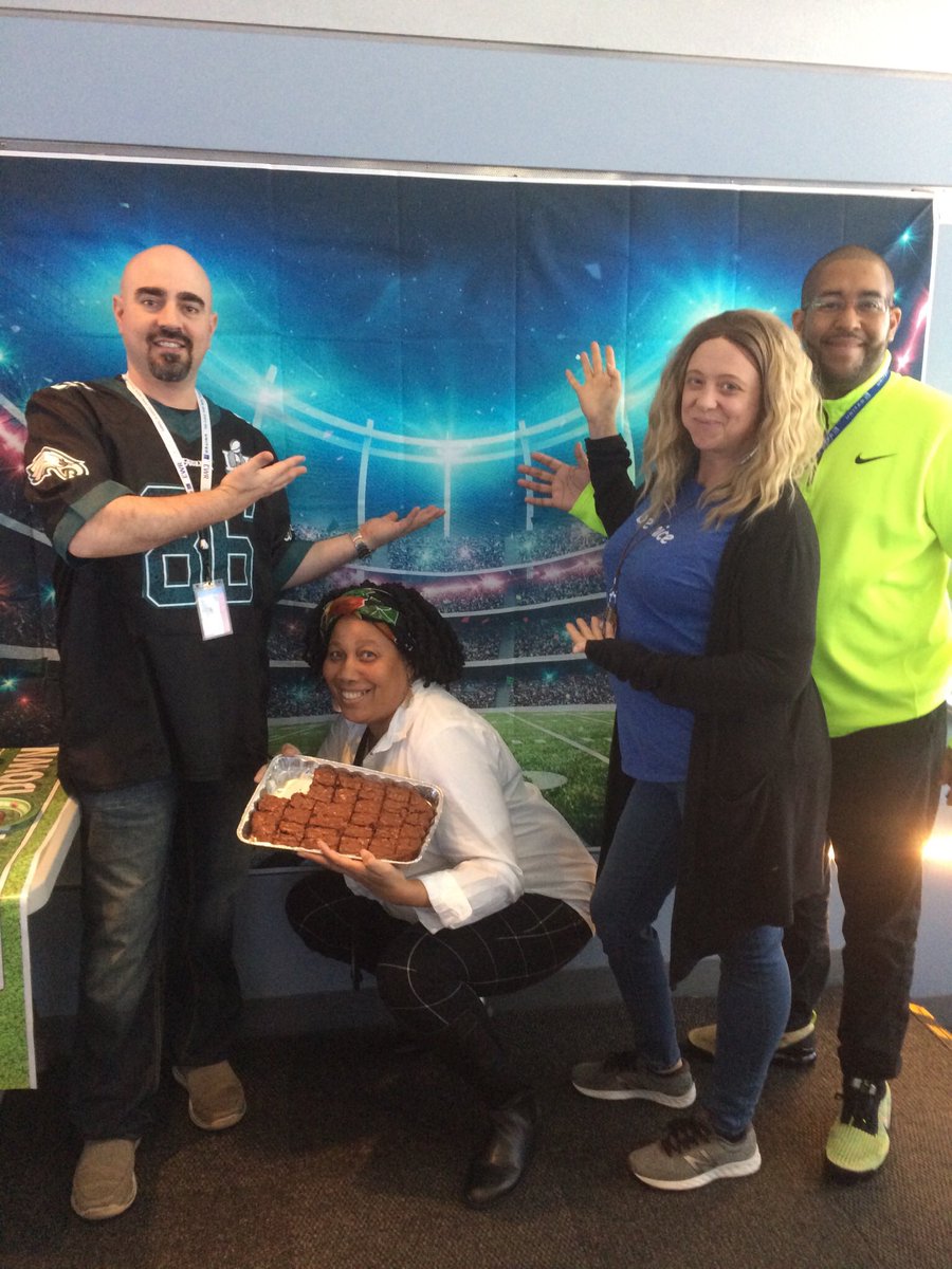 RSS Mir, Thiago, and Maria delivering wings and Chips to our team memebers for the Super Bowl Party.