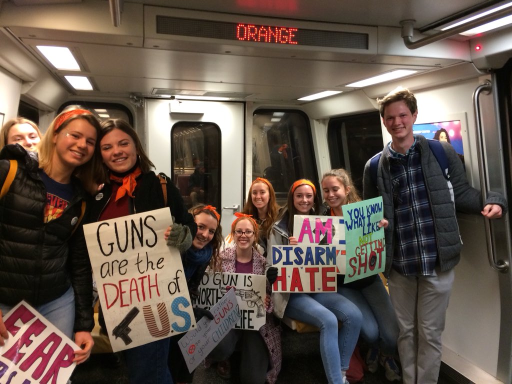 protesters are in a buoyant mood on DC’s metro today. These kids are from Sonoma, Calif. #NeverAgainpic.twitter.com/Bdvm2BWuIt