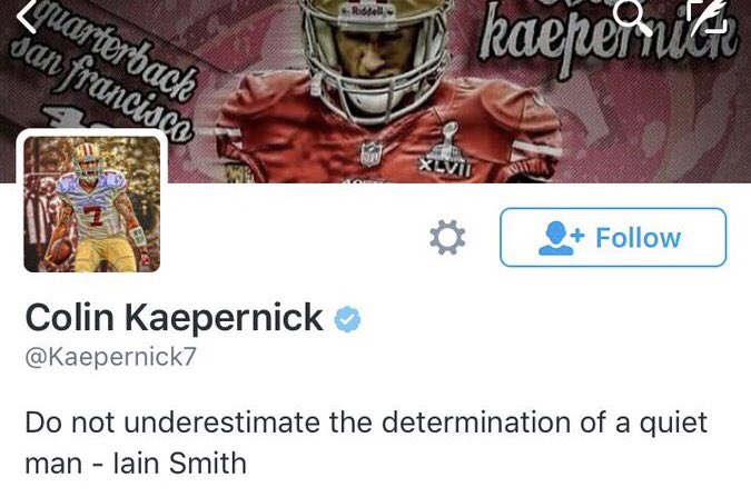 It still makes me laugh that for years Colin Kaepernick’s Twitter bio was just a quote from Iain Duncan Smith.pic.twitter.com/qYEgWQWpWQ