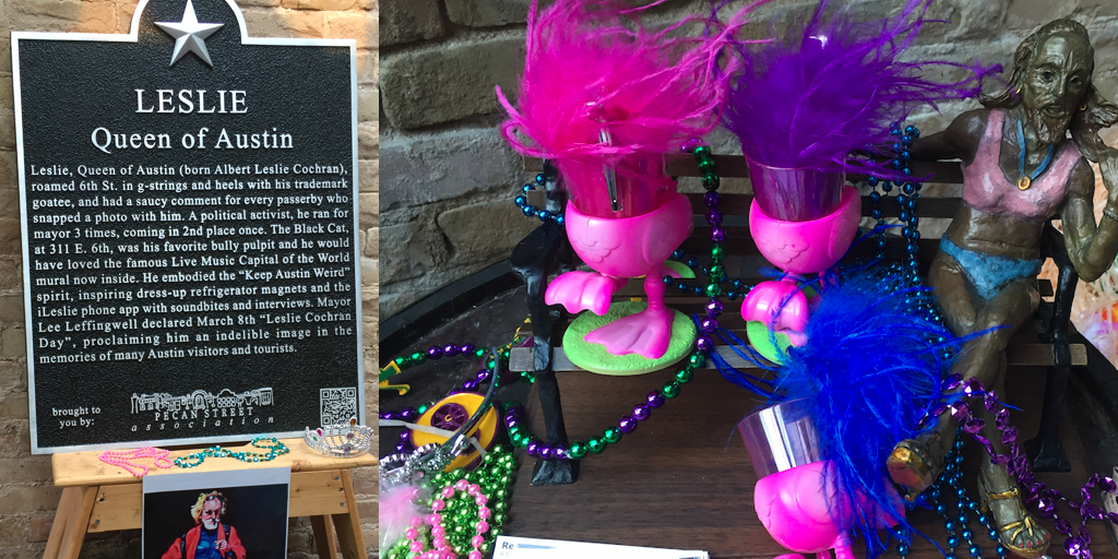 Nice news: The Pecan St Assoc & @TheNookAustin dedicated a plaque this week in celebration of Leslie, #queenofaustin.pic.twitter.com/JxjegnuMI4