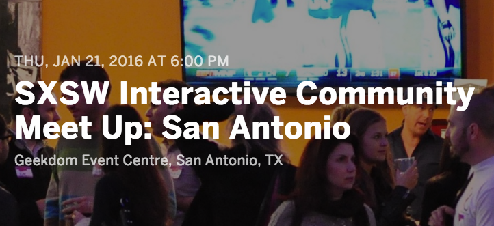 Interactive director @Hugh_W_Forrest & staff are in San Antonio @Geekdom tonight, join 'em! http://sxsw.is/1T27vCK pic.twitter.com/4QfOVVxVd4