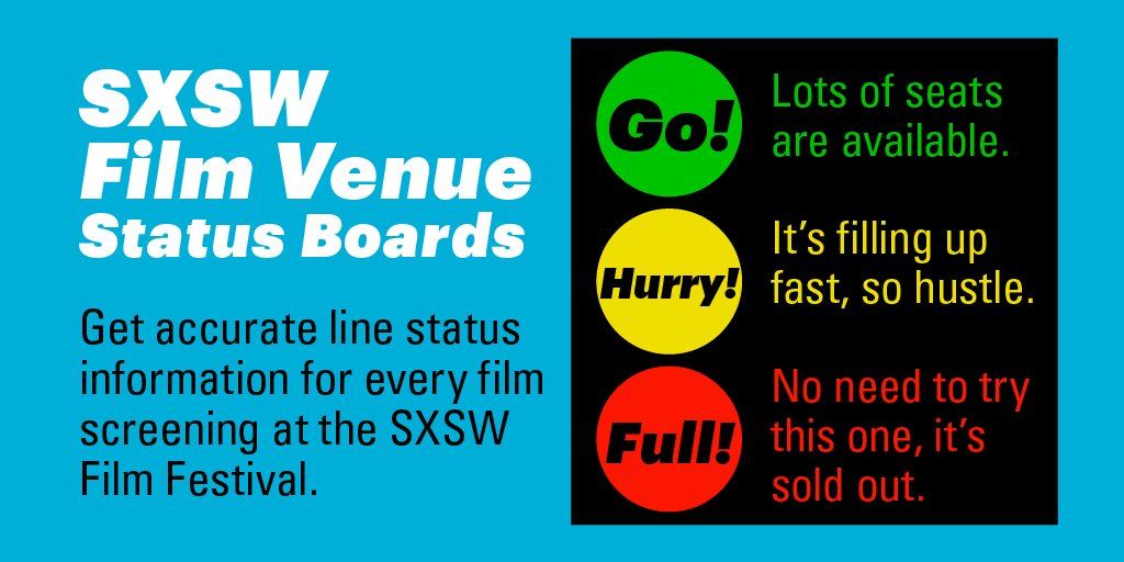 Pro Tip: Check the Venue Status Boards on the #SXSW GO app to get line status info for all film screenings.pic.twitter.com/5lVCINbkc8