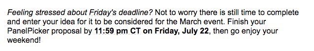 PanelPicker not allowing edits to proposals right now, says "The deadline for submitting SXSW 2017 ideas has passed" -- there's a bug