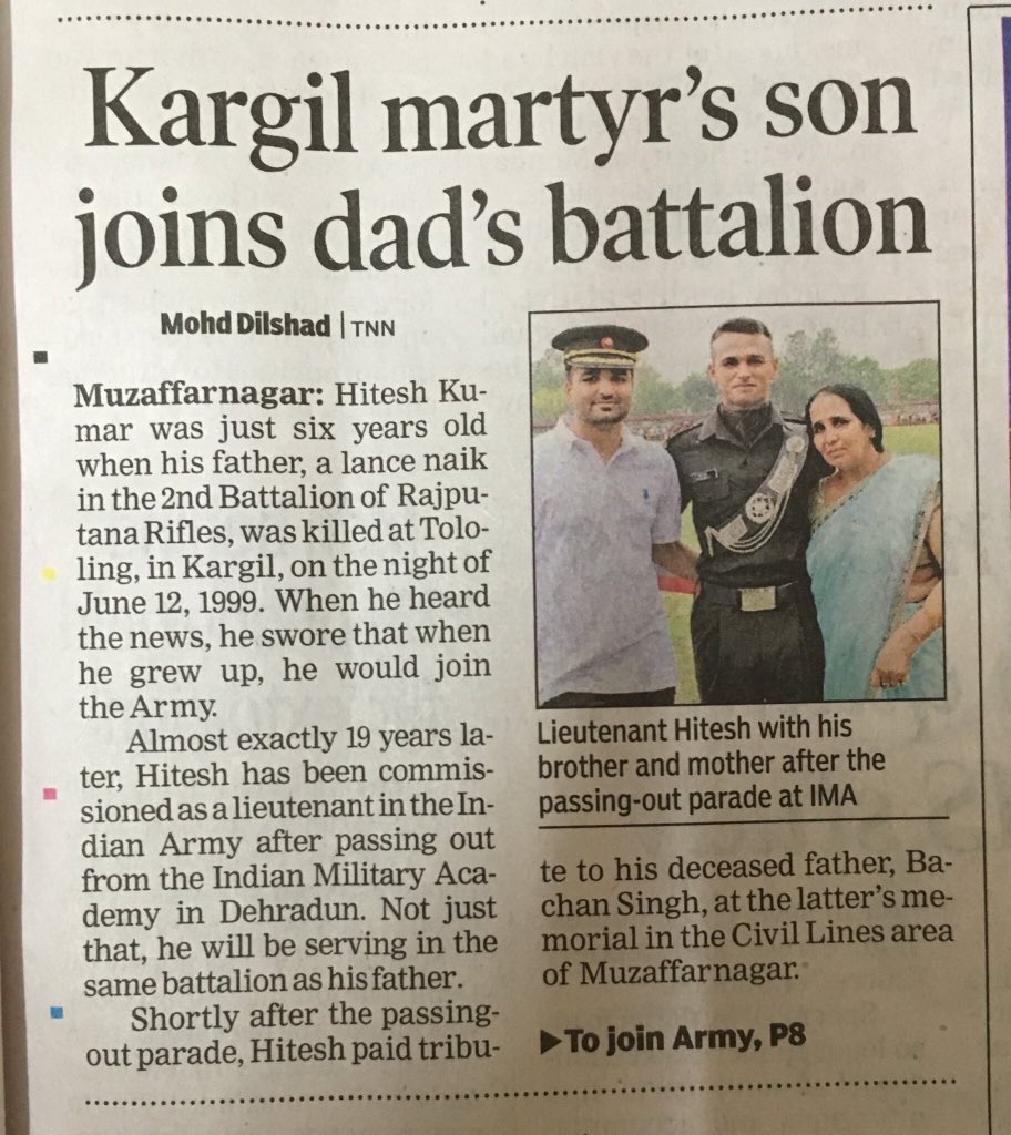 Here is a son who dons the uniform as a tribute to his martyr father, and then there is a daughter who made her career trampling over her father’s supreme sacrifice! Guess it takes all kinds!!https://twitter.com/mssirsa/status/1005999049776828416 …