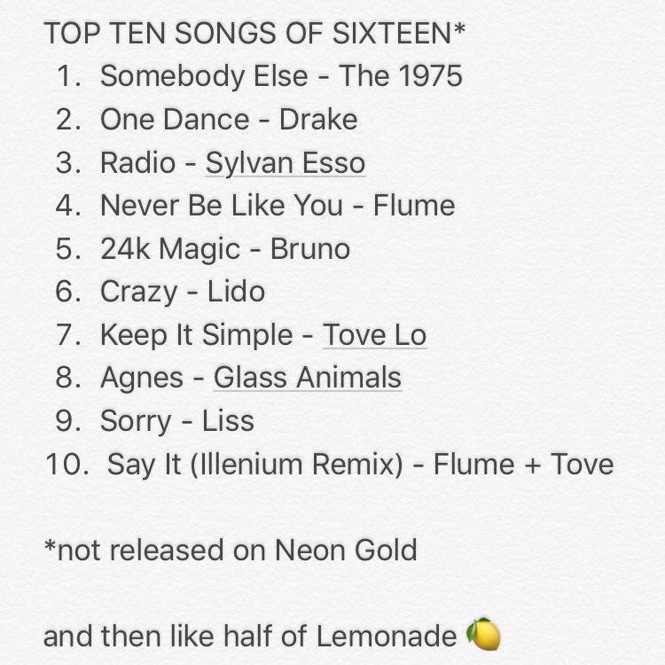 just realized we forgot to run with this last month but better late than never ~ our Top Ten Songs of Sixteen