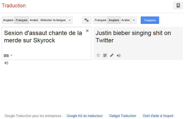 Essayez ça marche : https://translate.google.fr/?hl=fr#fr/en/Sexion%20d%27assaut%20chante%20de%20la%20merde%20sur%20Skyrock ….pic.twitter.com/8RgTmgEomW