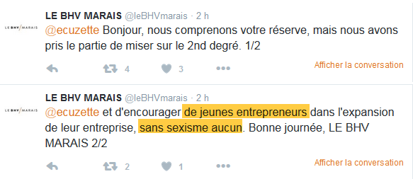 Haaa l'excuse "soutien aux jeunes entrepreneurs" du BHV pour justifier un marketing putassier pour gros misogynes :pic.twitter.com/dTxIVV5iv1
