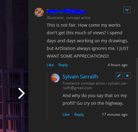 C'est balot, je voulais aller voir son taff mais tu as biffé son nom. Il a perdu 1 vue, je comprends sa colère.