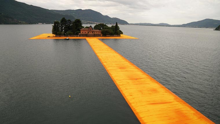 The Floating Piers on Lake Iseo in Italy looks like to an old Mario Kart circuit : http://www.thefloatingpiers.com/ pic.twitter.com/0JgzEZYg40