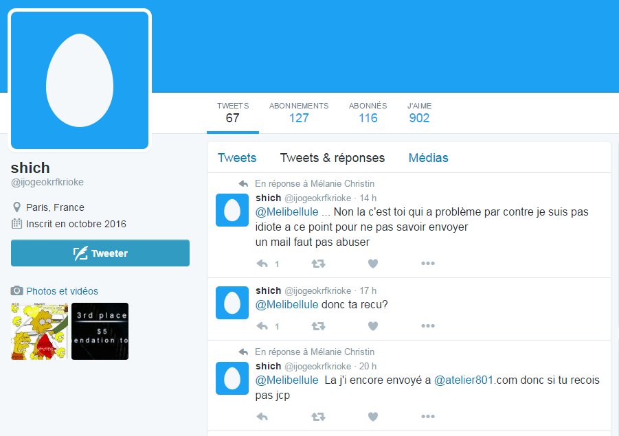 Hé twiter y'a @ijogeokrfkrioke qui usurpe l'identité de ma @chihuahuamalou d'amour pour choper un taf, merci de report en masse !pic.twitter.com/4HQPx76Cka