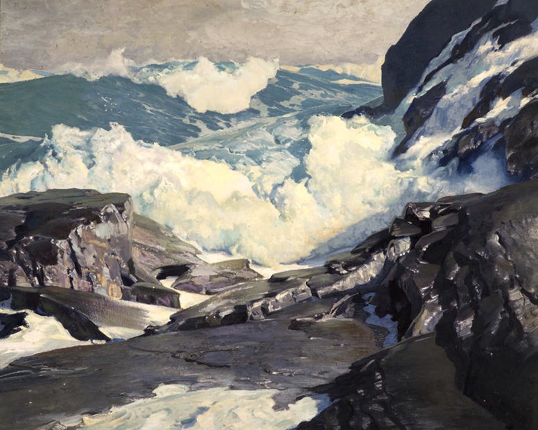 Looking at this again now. I mean, I've been there, trying to fill a sea area with some paint. But to make everything realistic-looking -- to get not just the geometry of the waves crashing against each other, but also the shading and lighting just right -- is truly masterful.
