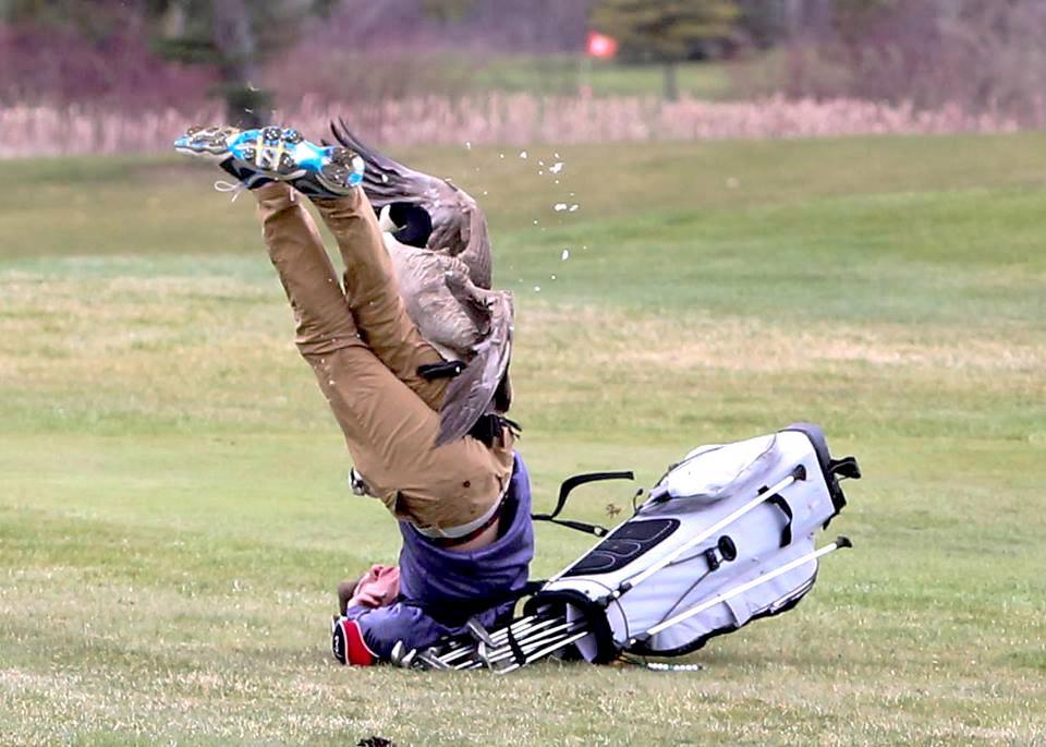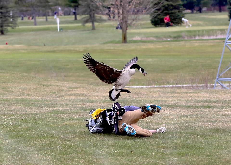 Looks like that goose took a foot to the face in that last shot