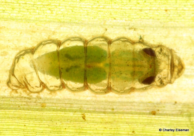 LOOK at this strepsipteran pupa! You can see his raspberry eyeball! The wasp host has perished, but I still have hopes the parasite will emerge from the pupa. (but if not, I may grind it up to see what symbionts it has...)