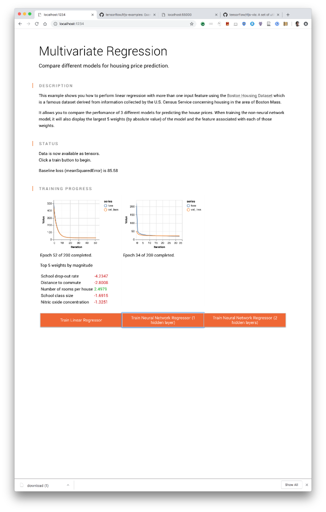 We've updated our TensorFlow.js examples to be easier to understand and incorporate more visualization. Check them out here → http://bit.ly/2rlFZbi pic.twitter.com/5pjX9e4XGx