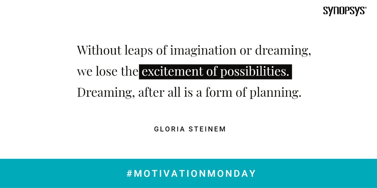 #MotivationMonday! Today's quote comes from journalist Gloria Steinem: "Without leaps of imagination or dreaming, we lose the excitement of possibilities. Dreaming, after all is a form of planning.#lifeatsynopsyspic.twitter.com/WWrXSYIxyy