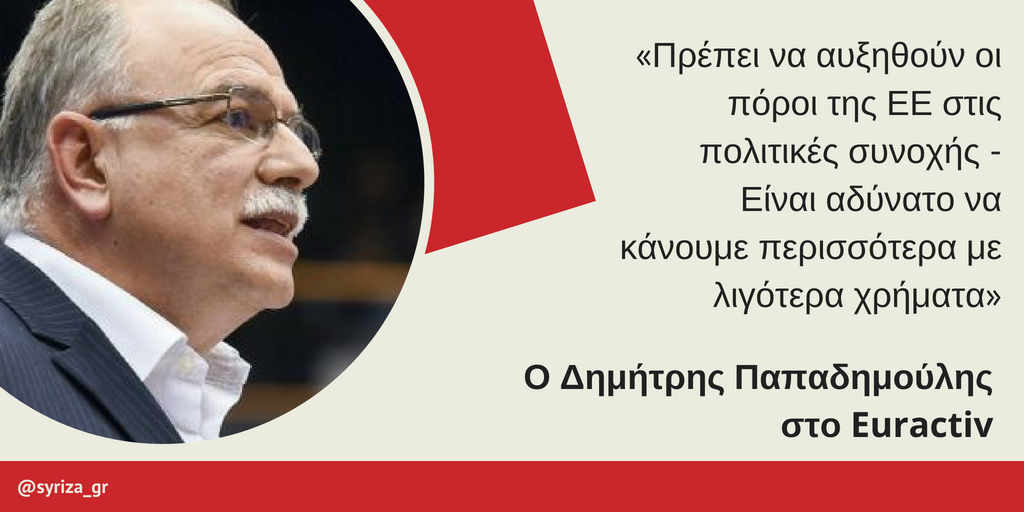 Ο @papadimoulis στο Euractiv: Είναι απαραίτητο να μην έχουμε περικοπές στις πολιτικές συνοχής της ΕΕ, καθώς αυτές οι πολιτικές έχουν εμβληματικό χαρακτήρα και μπορούν να συμβάλουν στην καταπολέμηση του ευρωσκεπτικισμού. https://bit.ly/2LMSSnW pic.twitter.com/p77HA3AXsf
