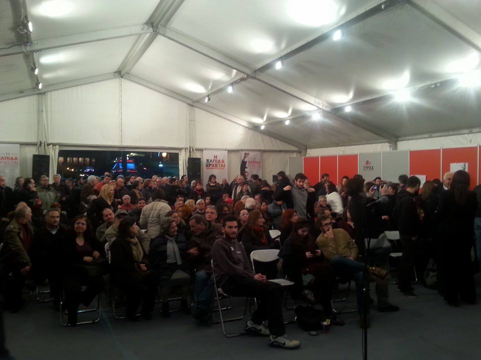 Στο κεντρικό εκλογικό περίπτερο του #syriza στην πλ. Κλαυθμώνος παρακολουθούν #asktsipras (http://www.syriza.gr )pic.twitter.com/vlJyTPoOQW