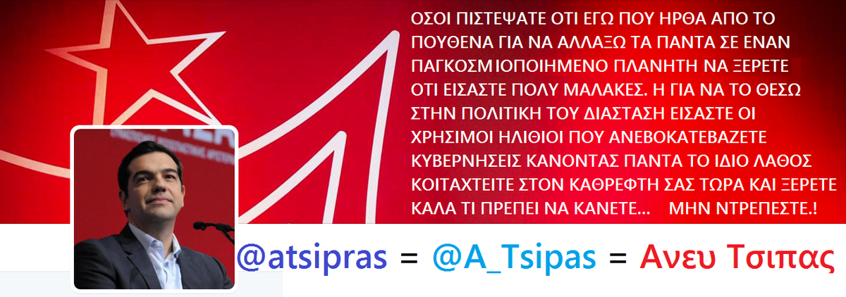 @syriza_gr ΟΙ ΧΡΗΣΙΜΟΙ ΗΛΙΘΙΟΙ ΗΤΑΝ ΕΚΕΙΝΟΙ ΠΟΥ ΕΒΡΙΖΑΝ ΚΑΙ ΠΡΟΠΗΛΑΚΙΖΑΝ - ΜΗΝ ΤΟΥΣ ΠΡΟΚΑΛΕΙΤΕ ΣΥΝΕΧΕΙΑ#MaziNikamepic.twitter.com/Vvgqc8bHUE