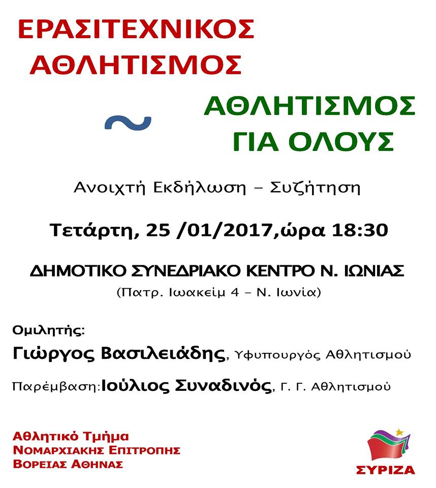 Σήμερα, ο Γ. Βασιλειάδης και ο Ι. Συναδινός σε ανοιχτή εκδήλωση για τον ερασιτεχνικό αθλητισμό στη Ν. Ιωνία http://bit.ly/2j4g4Dr pic.twitter.com/KZGPCPWslX