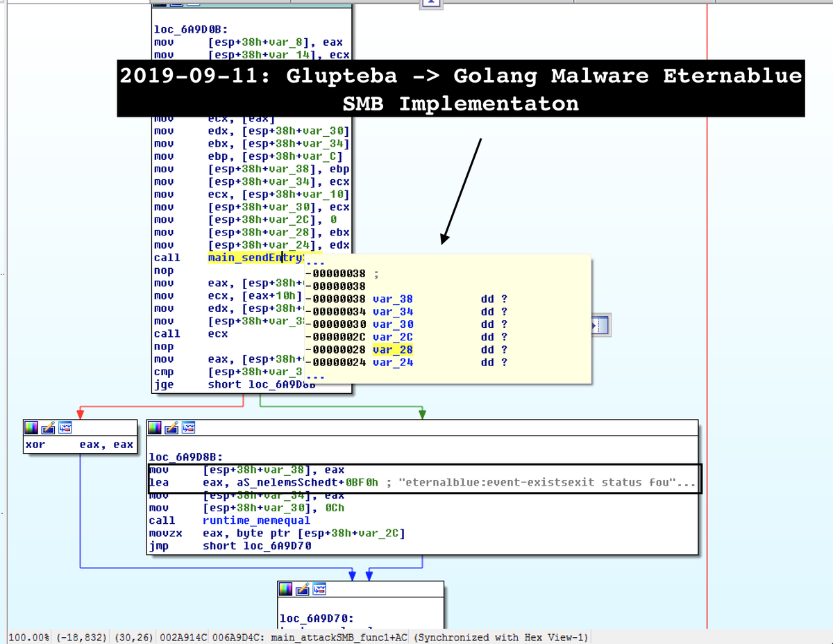 The SMB portions are hexlified for EB and DP, I copied and pasted the ones from here into a yara and got direct hits https://github.com/jflyup/goMS17-010/blob/master/ms17-010.go#L13 …https://twitter.com/VK_Intel/status/1171848248614670336 …
