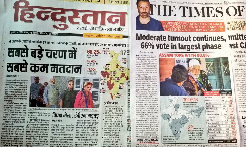 The headline that captures it all: सबसे बड़ा चरण, सबसे कम मतदान by