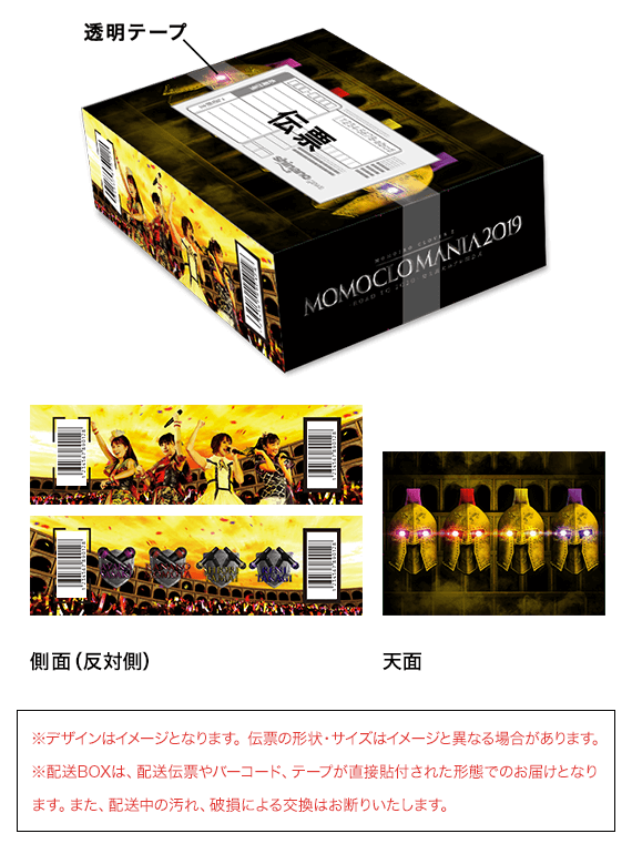 #ももいろクローバーZ】2/26発売『MOMOCLO MANIA 2019 ROAD TO 2020 史上最大のプレ開会式 LIVE』の対象商品を 2/19(水)23:59までにご予約いただいたお客様限定で、“ももいろクローバーZオリジナル配送BOX”でお届けします