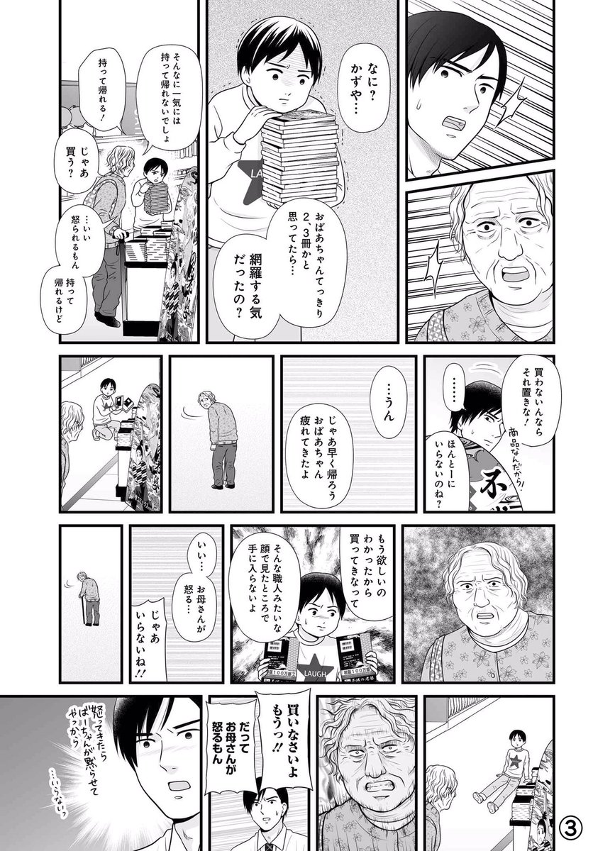 先日書店の某人気少年漫画コーナーにて30分以上 祖母「買ってあげるって」 孫「でもお母さんが怒る!」 祖母「怒らないよ、おばあちゃんがうまく言ってあげるから」 孫「でも怒るもん!」 祖母「大丈夫だって