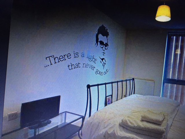 How rude. As if I’d have that awful racist buffoon stencilled on my wall! It would be quite funny if it was glow in the dark though, so when you switched the bedroom light off it never went out!