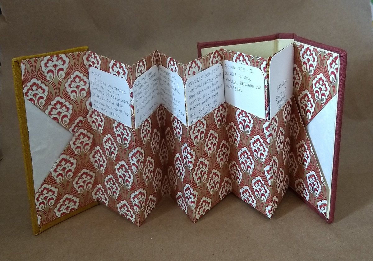 I've been working on some books all summer and since they've been passed along I can finally show them off! Here's a big long thread of them! First off: Hella! A wraparound accordion with Hadrian's letter from season one. #friendsatthetablepic.twitter.com/czxg6V5O19