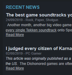 Very cool of Steam to exclusively highlight 'Recent News' from the only 3 games websites: PC Gamer, Rock Paper Shotgun and Eurogamer @steam_games @Steam_Supportpic.twitter.com/3cF81dCIEe