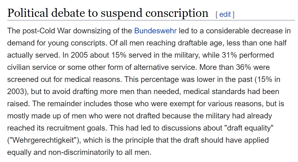 even before conscription ended, women were exempt and less than one half of men at draftable age actually served for various reasons (medical exemption, military reached recruitment targets). I can't say whether it "worked well" or not, but they ended it and it's going finepic.twitter.com/uwu9PT5TqA