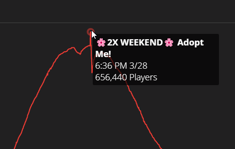 The new World Record for CCU (Players Online) in a Roblox game is 656,440 set by @PlayAdoptMe on Saturday 28th March 2020