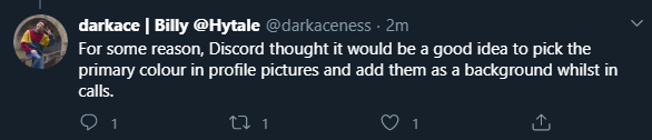 I'm dying... a friend of mine @darkaceness just discovered @discord chat now uses the main color of your profile picture as the background, resulting in average Skin Tone backgrounds Classic example of tech companies not considering their ideas through a racial lenspic.twitter.com/pzFWP0wMuG