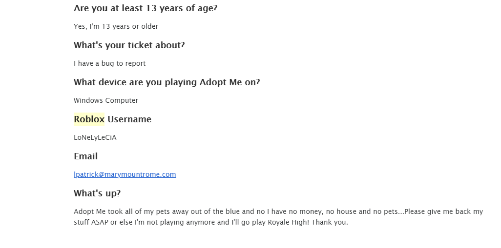 My Roblox Username is LoNeLyLeCiA, what's a ticket number?