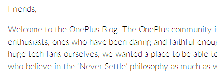 @oneplus Post body font on new blog is unreadable for me. I'm running chrome on windows 7, default zoom levelspic.twitter.com/SatpiRVWlG