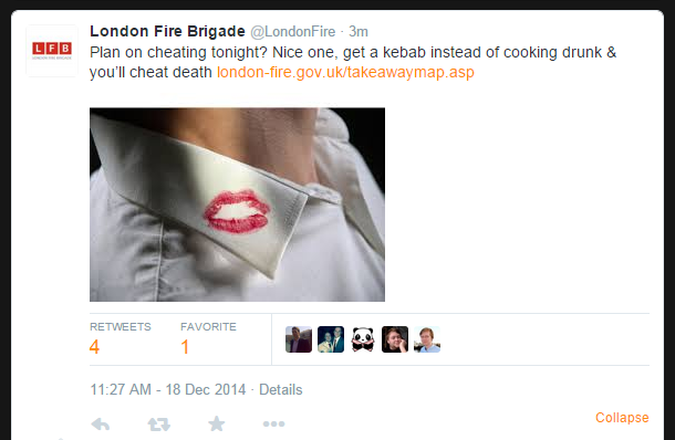 What a weirdly awful tweet from @LondonFire. "Planning infidelity tonight? Don't also burn to death!"pic.twitter.com/c3N6sDsWwj