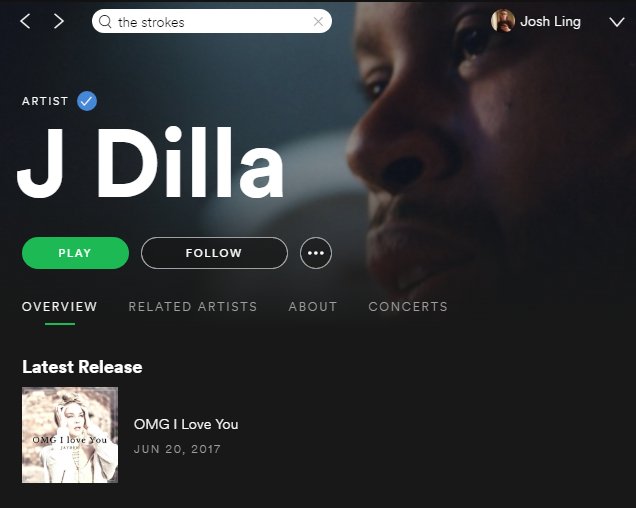 Hey @SpotifyUK, you've filed the new track "OMG I Love You" by Jaydee under J Dilla, the incredible hip hop producer who died in 2006pic.twitter.com/1cNn4auBM9